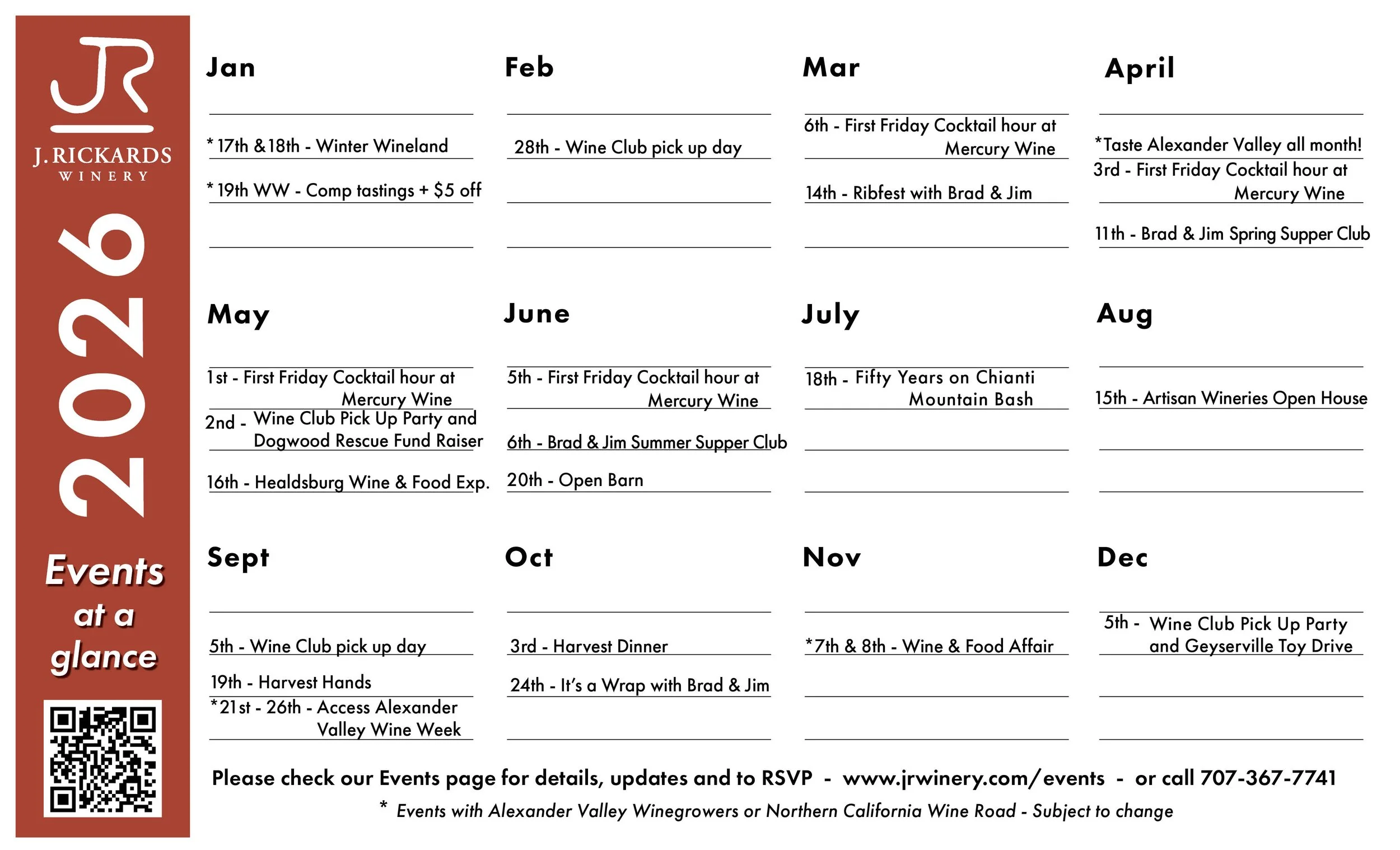 Additional information will be added to our Events page, including links to purchase tickets when they are available. All JRW events will require reservations!