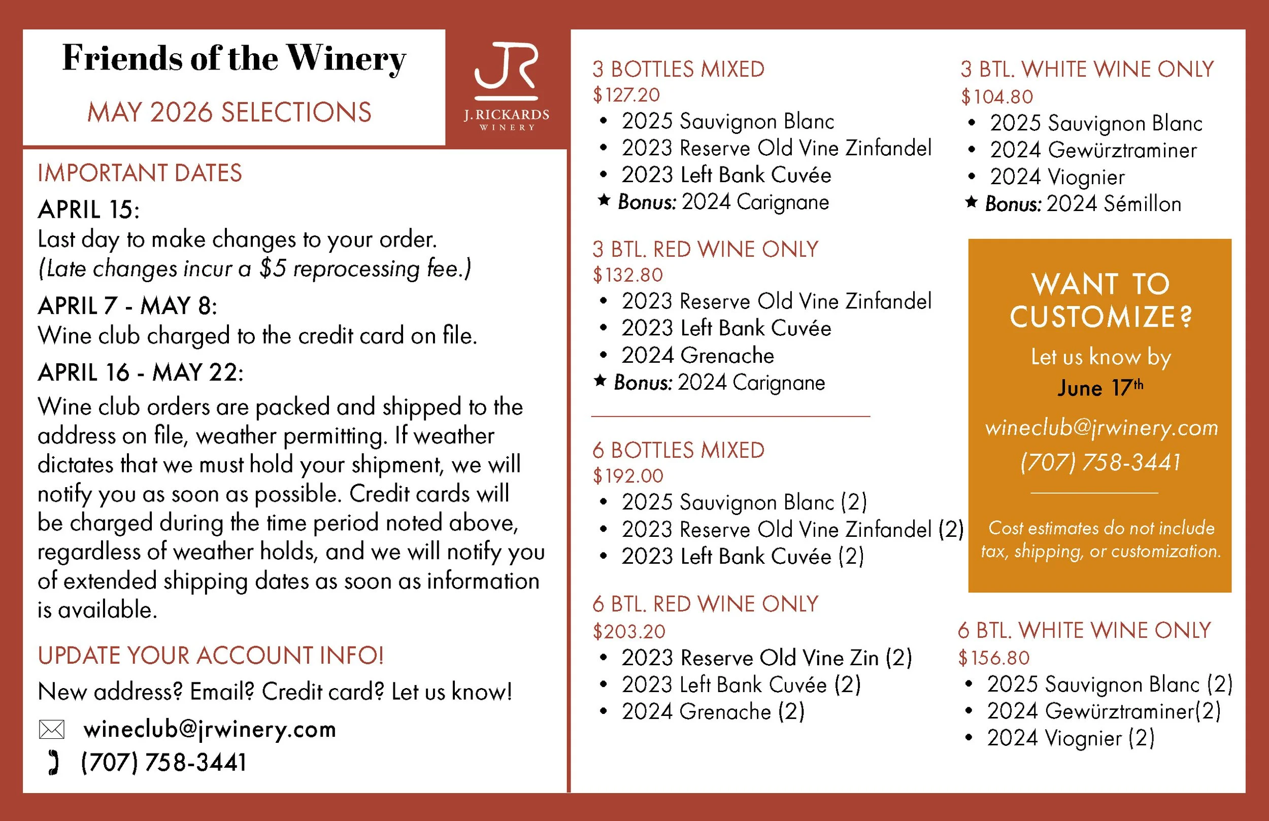 With continued shipping and packaging material cost increases, there are some things that are out of our control. Although some state exceptions will still apply, club shipments and orders for 3-12 bottles per package will be a discounted flat rate based on Wine Club level. Please review our current Shipping Policies.
